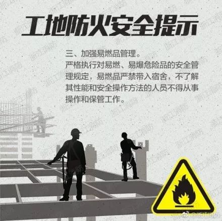 13281888119城市之中,建筑工地是多工种密集型立体交叉混合作业的施工场地,尤其在工程施工高峰期间,明火作业多,作业工种多,施工方法各有不同,因而就出现不同的火灾隐患,如果疏于管理,极容易引发工地火灾。消除各类安全隐患显得尤为重要。消防发布工地防火安全提示,强化防火管理措施,严防安全事故发生。